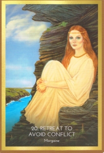 Morgaine le Fay’s childhood must have been fraught with difficulty after her father, the Duke Gorlois, was killed, and King Uther took his place. Here, she huddles under the ledge on Tintagel Island, contemplating which course will lead to her destiny. The old texts say she was a great healer and the priestess of Avalon who came to Arthur’s aid after his last battle in Camlann. You, too, may have a calling to be a healer. ID so, when it is time to come forward, defy the opposition and fulfill this desire. Take courses in your desired field. Studying herbal medicine and natural modalities will benefit you as well as others. But for now, retreat and prepare for your future life, out of harm’s way where you can think clearly without negative influences.