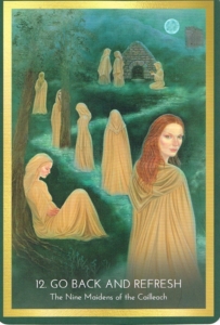 It is said nine maidens kept the holy well on Nun’s Island in Ireland for the Goddess Cailleach. In the guise of the weary crone of winter, Cailleach would come down from her mountain cairn high atop Slieve Gullion to drink from the sacred waters each spring. Her youth regained, she would transform into the fertile maiden of spring. Take time out for a retreat to renew your physical body and your priorities. You have an opportunity to break old, outworn patterns. Stepping back from a situation will breathe new life into it.