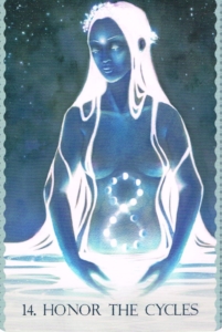 To connect with the wisdom of this card, stand with your feet hip or shoulder distance apart. Place your hands on your hips or relax them along your sides and begin to move your hips in a horizontal figure eight. Continue this movement until you feel inspired, present, and one with the infinitely cycling wisdom of the Cosmic Dance.