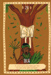 As if playing with a powder keg at the edge of a bonfire, the negative influence of Odu Ika in this moment alerts to the dangers of aggression and imminent explosive violence. This is often gratuitous; you’ve reached your limit and from there all that remains is the leap into the unknown abyss. It’s not always easy to see the reality of life and not be hurt when you realize that, despite all your efforts, it seems that happiness is getting farther and farther away. Still, giving in to these impulses will not cause revolution, just more confusion.