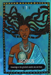 Irossun’s empowering Ritual: On a Waxing Moon Saturday, using a pencil, write all your best wishes on a piece of white paper in honor of Ori – your spiritual head Orisha. Make a hole in the top of a melon and put the paper inside, drizzling it with honey and olive oil. Light a seven-day whit candle and fix it in the hole, then put the melon with its candle in a safe place above head height until the candle is burnt. On the next day, dispatch the melon into the sea or a river.