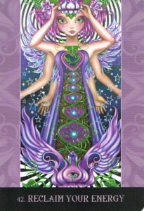 The card encourages you to be aware of where your energy id going. If you are not at your optimal energy level, it invites you to consider the core of why this may be. You have the power to own your energy and choose where you direct it. Look at situations that trigger drama and anxiety to reduce energy loss. Deteach from environments or people that are not healthy for you. It is up to you to make the shift. Victim mentality is no help, so realize you have the power to transform your life and choose healing and self-empowerment. It’s time to kickstart the upward spiral to abundant energy and soul presence.