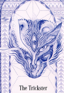 This card touches upon the cunning aspects of our human nature and asks us to consider all avenues of action that may be required. Aligning yourself with deceit may seem counterintuitive, but this has more to do with the cunning needed for survival – for example, outsmarting a predator. The Trickster energy is a useful ally in times of adversity. For example, you may lack support from other or those around you may rely heavily on you for assistance at a detriment to yourself. This card also relates to finding a way out of a situation against all odds, the last-minute rescue. Meditate on the image and allow the ideas to dance around tour brain. This is not about one-upmanship but offering yourself self-love in times of peril.