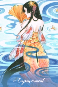 Within the realm of the Kitsune are beautiful ponds, still and tranquil, yet within them teems magickal life. Amongst the beings who dwell there are the koi mermaids, who come to you now with their message of empowerment. You are becoming stronger, calmer, more staunch and clear in your purpose and message, and there is a direction you are now setting that will be reached. The koi mermaids help the koi to persevere, to meet their challenges with perseverance and courage and a sense that every moment of dedication and learning will bring about the desired result.