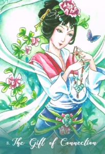 When we gather together, our vulnerabilities can be raw and feel exposed. Yet, when we gather under the influence of this card, we know we are safe, and something beautiful will come of our souls’ connections. When this card comes to you, Seeker, you know the Kitsune have blessed you with the ability to create harmony and connections between those who seem too different, too diverse to truly know each other. This card shows you the way to create a connection, to bring about harmony in a situation where several people who seem unable to get along are thrust together by fate and destiny. Through the wisdom and kindness that resides within you, and the fearless way in which you are truthful, you are able to weave people into groups that have a higher purpose and that can together create something greater than they could have achieved as individuals.