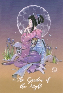 There are spaces and places within the world of the Kitsune that can be found within the human world, too. One of the most magickal places of all is a place where we can connect with moonlight, in a world that is no longer lit brightly, but gleaming with silver, the same as it is during our waking hours, yet entirely different because of the gift of moonlight. When this card comes to you, you are being asked to look at a situation, person, or concern from a very different perspective, and to allow yourself the space to contemplate it at a quiet time, in solitude, under the silver of the moonlight.