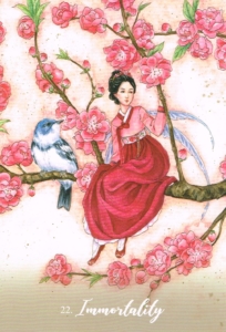 You are lifetimes long, Seeker, and your soul has journeyed and traveled through skins and forms and elements, time and again. In this lifetime, you are being offered the wisdom of all that has gone before in order to continue the healing journey of your own soul. You are surrounded by the energy of the peach blossom tree, a great old tree that grows deep within the Kitsune realms, and those who reach it are small compared to its mighty branches. You are now climbing the tree of immortality, and as you climb, your soul is refining itself, becoming more pure, more wise, shedding all that once held you back. The tree of the immortals whispers to you that you are one of its children, that you are immortal, and that you will return to its branches again and again in the lifetimes to come.