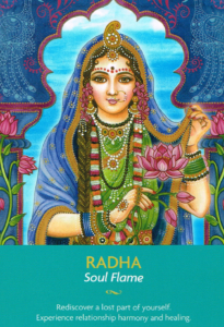 Loving union, connection and relationship harmony are key at this time. It’s important to remember, thought, that relationships won’t make you whole-only your own love can do that. You now have opportunities to find lost parts of yourself-maybe sensual aspects or the capacity to cherish yourself. The relationships around you will then begin to reflect the love you have for yourself. Increased romance, love and opportunities to express divine harmony through love are all becoming apparent in your life. You deserve divine love, and Radha, with her Shakti presence, is here to awaken this loving connection within you now.