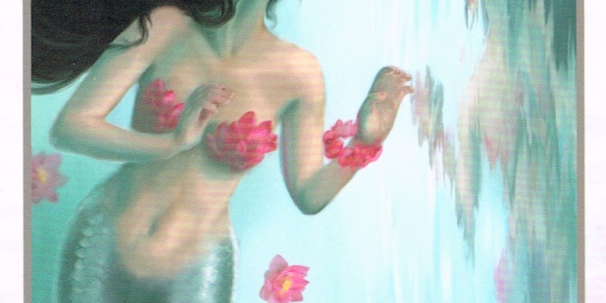 The Mermaids Sing: Water is a great mirror, and the darker it is, the clearer the reflections of the world around it will be. And so it is with life. The clear mirror we can look into will show us who we appear to be…but the dark mirror, metaphorically, is when life, or the sea, or our feelings become darker, more complex, sad, thoughtful, deep and at times, very painful. But it is at these times that we can see who we truly are-for under duress, our true characters can be observed. And sometimes, we do not always like the truth of what we see in this dark mirror. But the mermaid can help us with this, as she holds up a mirror, but a magical one, that not only shows us our appearance-it shows all of ourselves, our sweetness, our hurts, and our scars. In it, we may see what is hidden to the eye of the body, but known to the eyes of the soul. In dreams, these mirrors may appear, and in emotional times, when we realize that we are still hurting, or have wounds we have sought to cover up. There is no need to cover up or camouflage in this beautiful mirror. Nor is it right to judge the scars and woundings-or the beauty and the glory-they simply are, and by seeing clearly, especially in the dark mirror of the Great Mother Ocean, we can see who we are. While we swim in clear waters, we can see the light and the positive, but when we swim in dark waters, we can truthfully see so much of who we are, and make changes, adaptations, or come to accept the truth of who we are, without seeking to adjust. We come to self-love, self-knowledge, and self-healing.