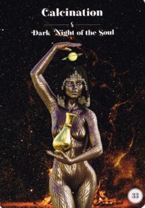 Calcination is the first step in the practice of alchemy, associated with the lead planet Saturn, where you start and work your way inward toward the gold of the sun. It invokes the Fire element linked with the divine masculine zodiac sign of Aries; it is the practice of burning and adding heat to material or a solution to strip it down to its original state. A difficult life event, challenge, or roadblock can trigger you to begin this sacred process of soul ascension. While this is the beginning of your alchemical journey, it’s an extremely necessary first step to progress to higher states of consciousness.