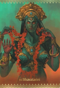Goddess Kali as Bhavatarini is the tantric priestess of karmic release and spiritual blessing. She liberates devotees from karmic struggles, especially those who keep repeating the same patterns with different players. Her presence in a reading implies the Divine Mother’s blessing of a divine disruption. Sometimes, the jolt of the disruption is such a shock that it is temporarily unpleasant, and we feel, therefore, that it is unwanted or harmful. However, once we allow the workings of such disruption to realign our affairs, we will come to recognize and be grateful for what is taking place. We will see it as a saving grace rather than something we had to endure. The oracle predicts the ceasing of restrictive or negative influences.