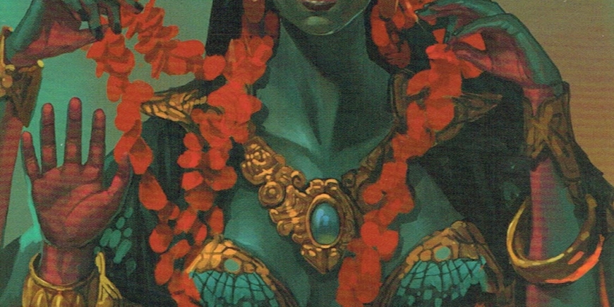 The tantric priestess of karmic release manifests with the capacity to integrate higher divine energy into even the most stubborn patterning that has so far resisted healing. When momentum is building, and you don’t know how to stop fueling the fire or reverse the damage, she appears. Her presence indicates that this is a powerful time for spiritual work and healing practices. She will support the work and much growth can come from it, particularly at this time. No matter how wild they may seem, the storms of your life shall be gentled. You shall emerge unharmed.