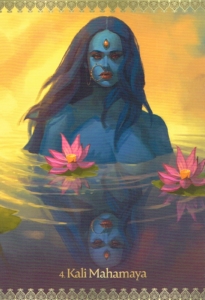 Kali Mahamaya arises spontaneously as a protective bearer of universal truth when a situation has become unnecessarily, complicated or confusing to your heart. The truth she awakens may provide immediate relief, or it may not be easy to accept at first. Either way, you are promised revelations that shall ultimately lead you beyond deception, or beyond what is simply not right for you. She protects you from that which is unworthy of your heart and has constrained your spirit.
