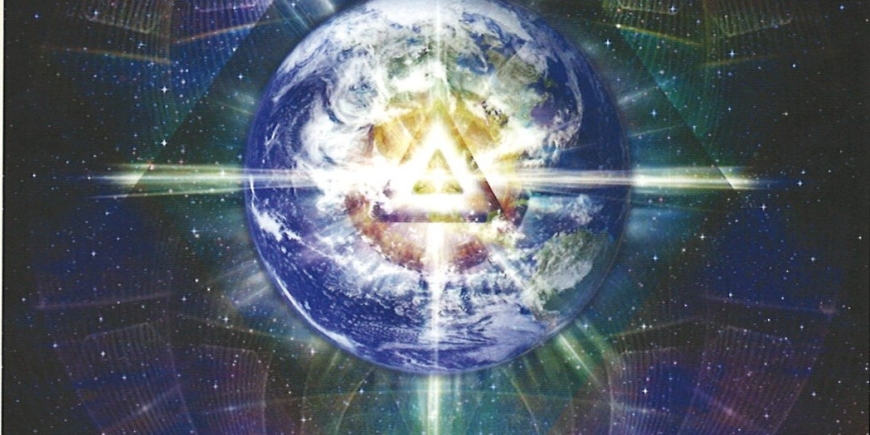 Send golden healing rays of light anywhere or to anyone on Earth. Do this for at least thirty seconds. When you have finished, release Earth from your hands and float towards the open door. Turn around and look at the mirrored door. The writing has changed. Across your heart, it now says, “You are the World, and the World is You.”