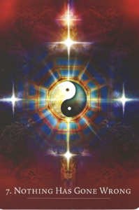 In the last few days, a change came out of the blue. It may have felt like your body and mind move through a crack in reality as your life altered course so suddenly. Deep within, you have been craving change and this situation brings new and different experiences to your life. You may be feeling a little light-headed and dazzled by the brilliance of this expanded version of you, but you are doing so well. It is now time to catch your breath and settle in to your new outlook. This is an opportunity to look at your thoughts, ideas and reactions to your potential success. As you become aware, and implement change, you can rise above the limits people or situations have placed on you. This card depicts the trigram of the I Ching (The Book of Changes) with a yin yang symbol. This is a reminder that everything changes, hat nothing can exist on our physical plane without its opposite, and neither is superior to the other. You can’t stop anything that has manifested, but it can serve as inspiration to create new paths aligned with your soul truth.
