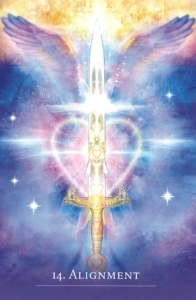 Place a hand on the card. Gently close your eyes and imagine the room is filling with light. Smoothly and easily breathe in love from higher dimensions. Imagine moving higher into the light of love where you see your soul as a distant star. Now imagine you are looking through a telescope. Line up your view until you see your soul star in the middle of your sight and feel the sweet spot of alignment. Adjust and refocus until you hold an aligned position for at least ten seconds. Breate the feeling of being in alignment throughout your whole body. Allow unconditional love and complete fullness to flood your entire being as you experience soul harmony. You now have a broader awareness of your soul and purpose. Float in this enlightenment for at least thirty seconds. When you feel ready, focus on the alignment within your physical body. Open your eyes and smile.