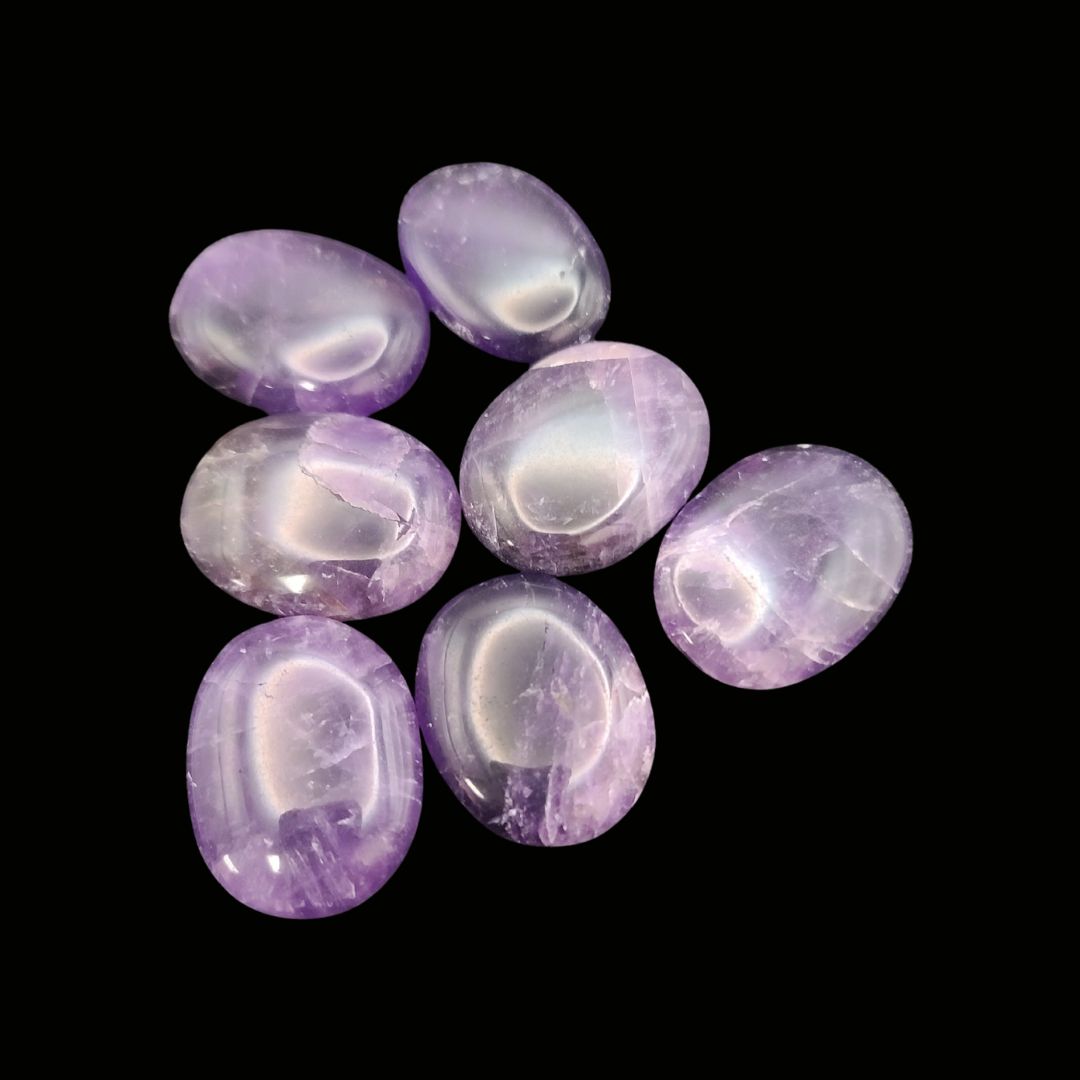 Amethyst is an extremely calming stone that helps purify the mind and clear negative thoughts. It helps balance the crown chakra and connect one to their higher self. Amethyst can be used to assist in balancing the physical, emotional and mental bodies, spiritual growth, calming the mind, and assisting with communication, especially communication involving emotions. It helps alleviate anger, fear and anxiety. It is a high vibration stone that can assist in protection from psychic attack. It transmutes negative energy into love and also helps one to overcome addictions.