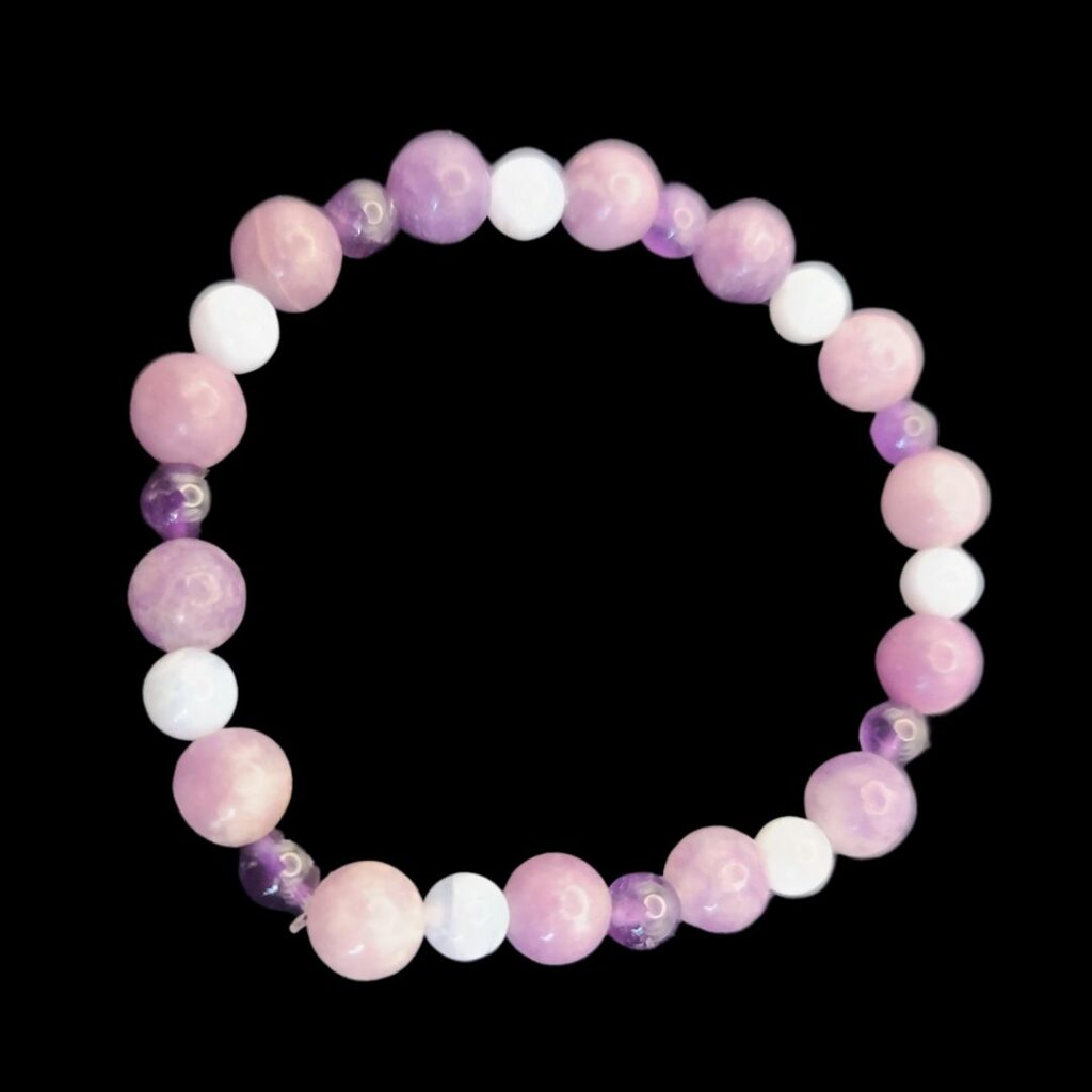 Anti-Anxiety Bracelet made with lepidolite, amethyst and blue lace agate beads.