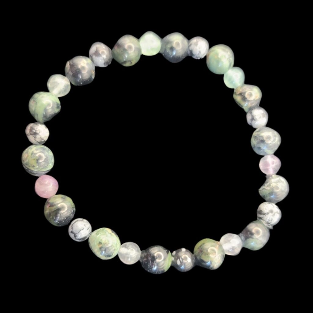 Balance Me Bracelet made with kambaba jasper, fluorite and snowflake obsidian beads.