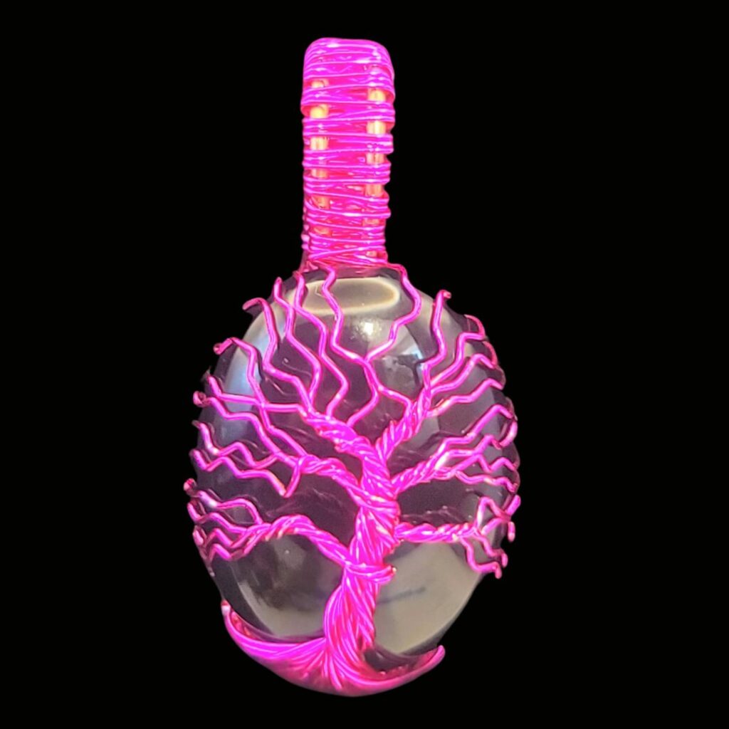 Black Agate cabochon stone wrapped with an hot pink tree of life. All tree of life pendants will come with an adjustable cord. The cabochons are 22mm x 30mm.