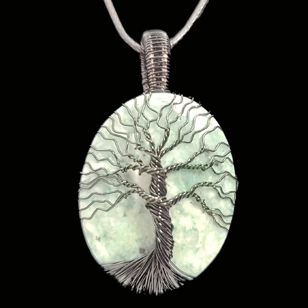 Mariposite stone wrapped with a black tree of life. All tree of life pendants will come with an adjustable cord. The large tree of life pendants are approximately 35mm x 45mm.