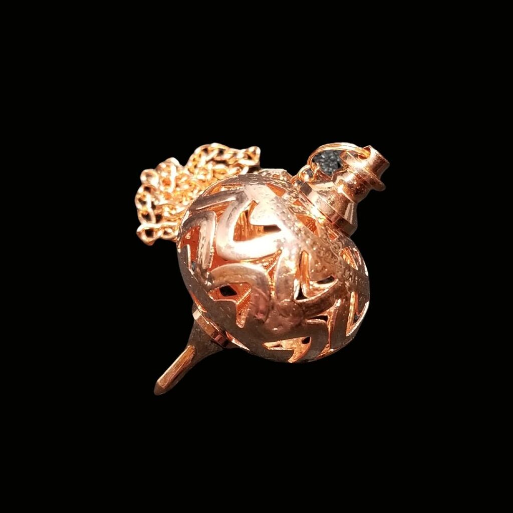 Copper Jali pendulum, approximately 8″ from tip to tip.