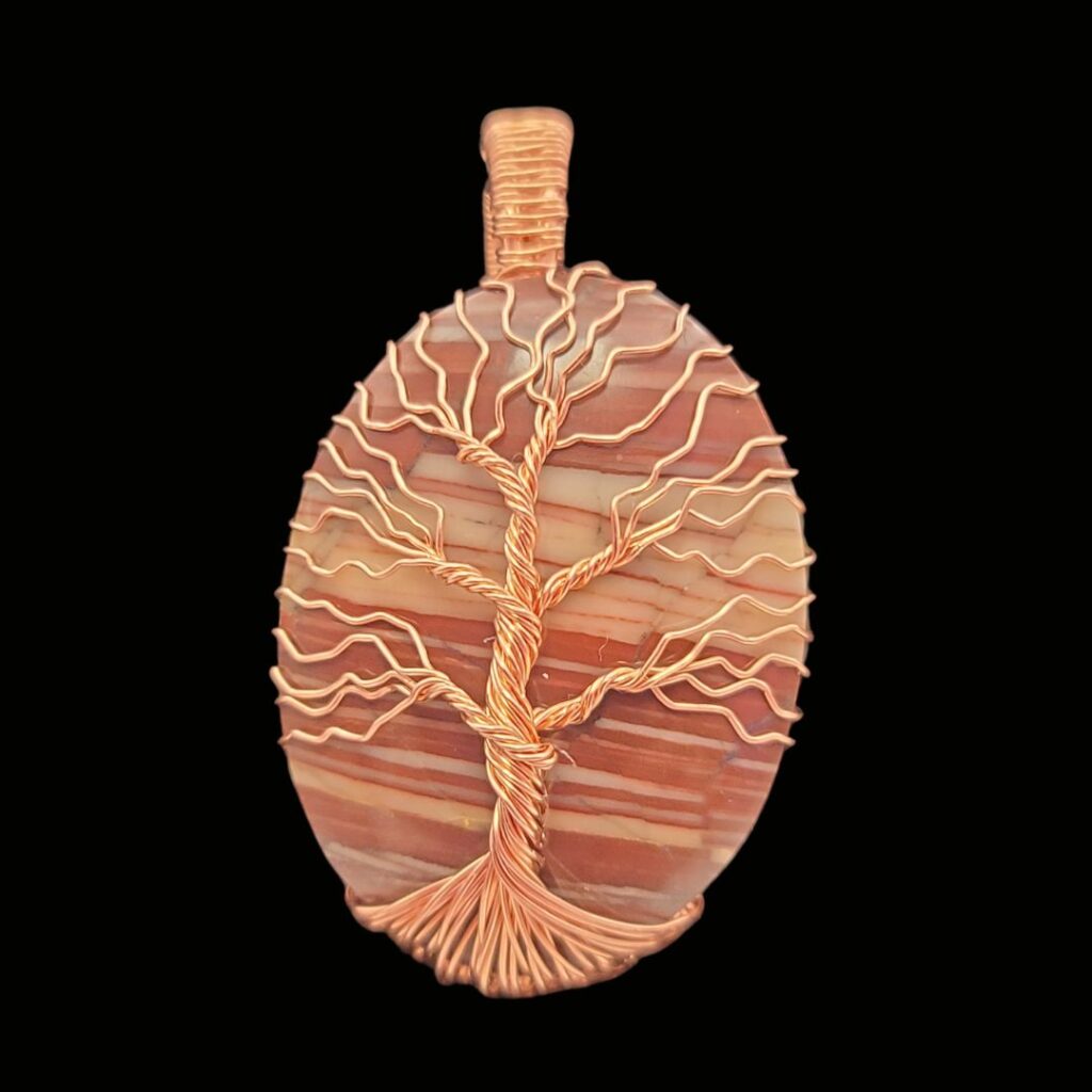 Dolomite stone wrapped with an copper tree of life. All tree of life pendants will come with an adjustable cord. The large tree of life pendants are approximately 35mm x 45mm.