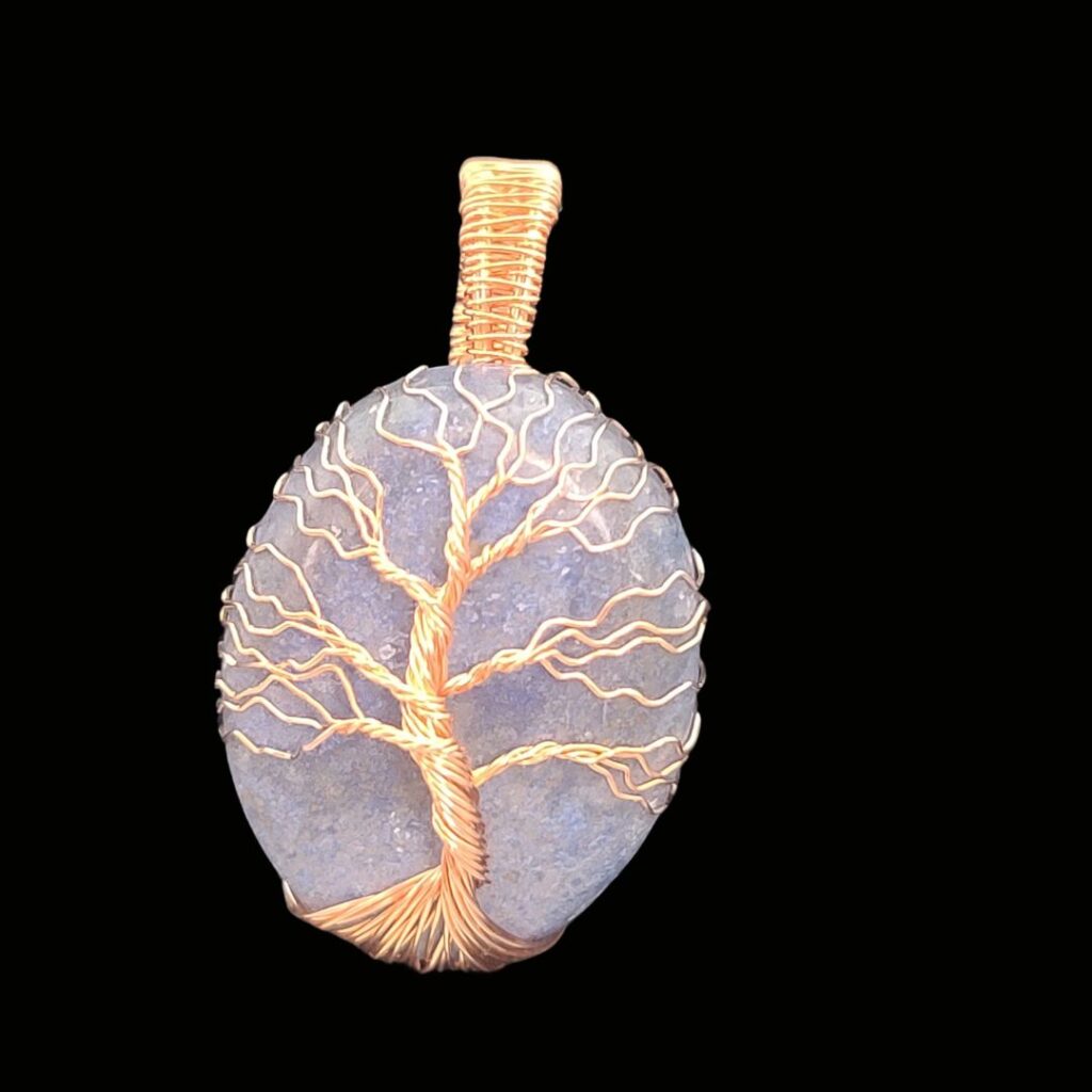 Dumportierite wrapped with a copper tree of life. All tree of life pendants will come with an adjustable cord. This large tree of life pendant is approximately 30mm x 40mm.