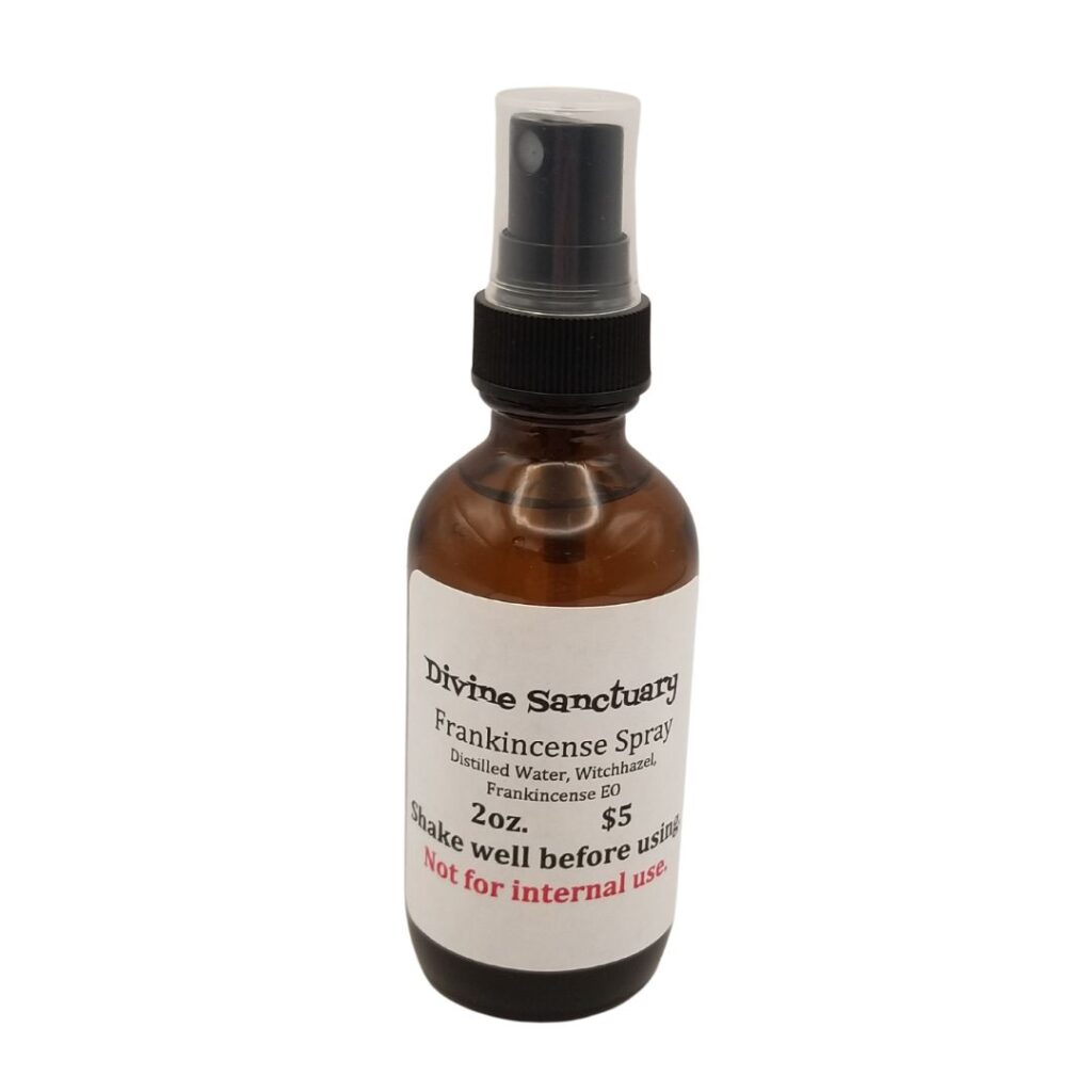 2 fluid ounces of frankincense spray made with Frankincense eo, Blessed Full Moon water, and witch hazel.