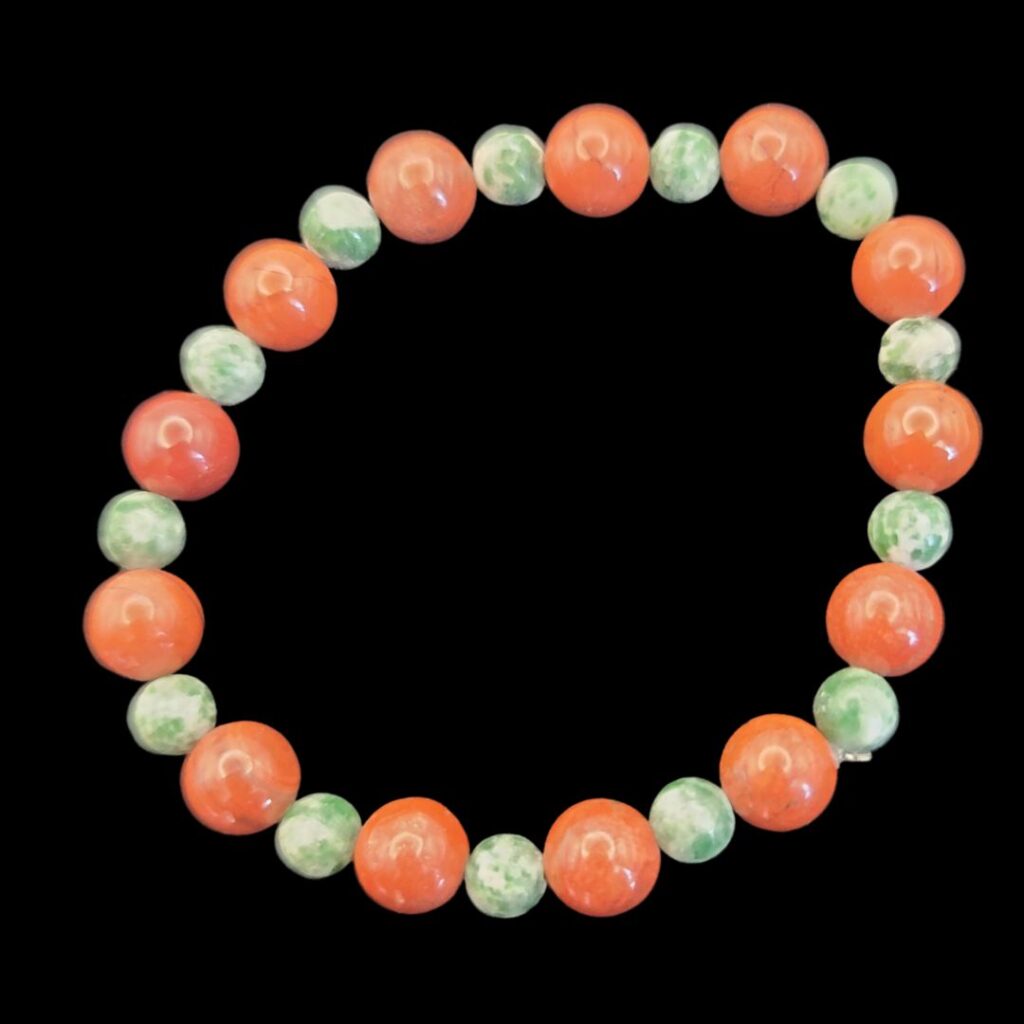 Ground Me Bracelet made with red jasper and tree agate beads.