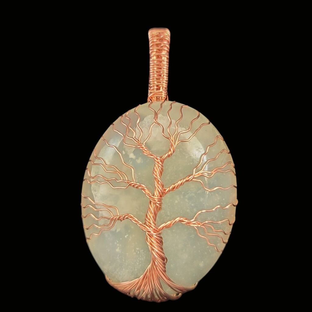 Jadeite wrapped with a Copper tree of life. All tree of life pendants will come with an adjustable cord. This large tree of life pendant is approximately 30mm x 40mm.
