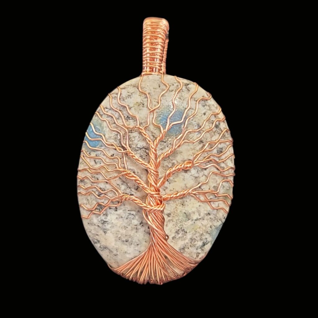 K2 Stone wrapped with a Copper tree of life. All tree of life pendants will come with an adjustable cord. This large tree of life pendant is approximately 30mm x 40mm.