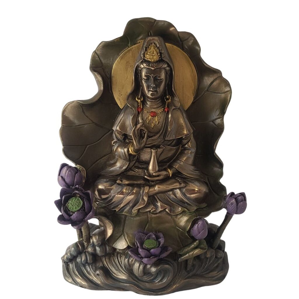 Lotus Kuan Yin statue, 6.5 in. tall, resin