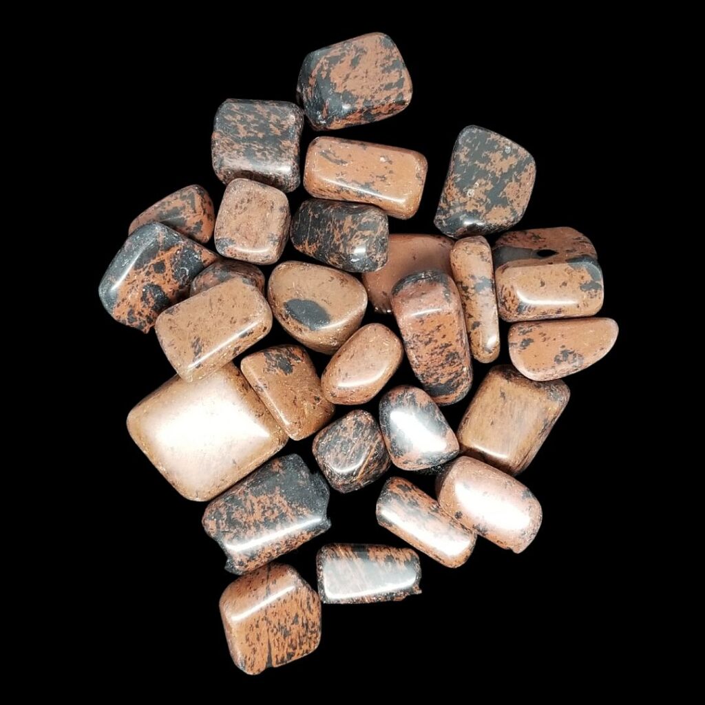 Mahogany Obsidian is good for grounding and protection. It helps relieve tension, encourages strength, stimulates growth and helps eliminate energy blocks. It helps with emotional transformation and clarity, along with supporting the overall well-being of the user.