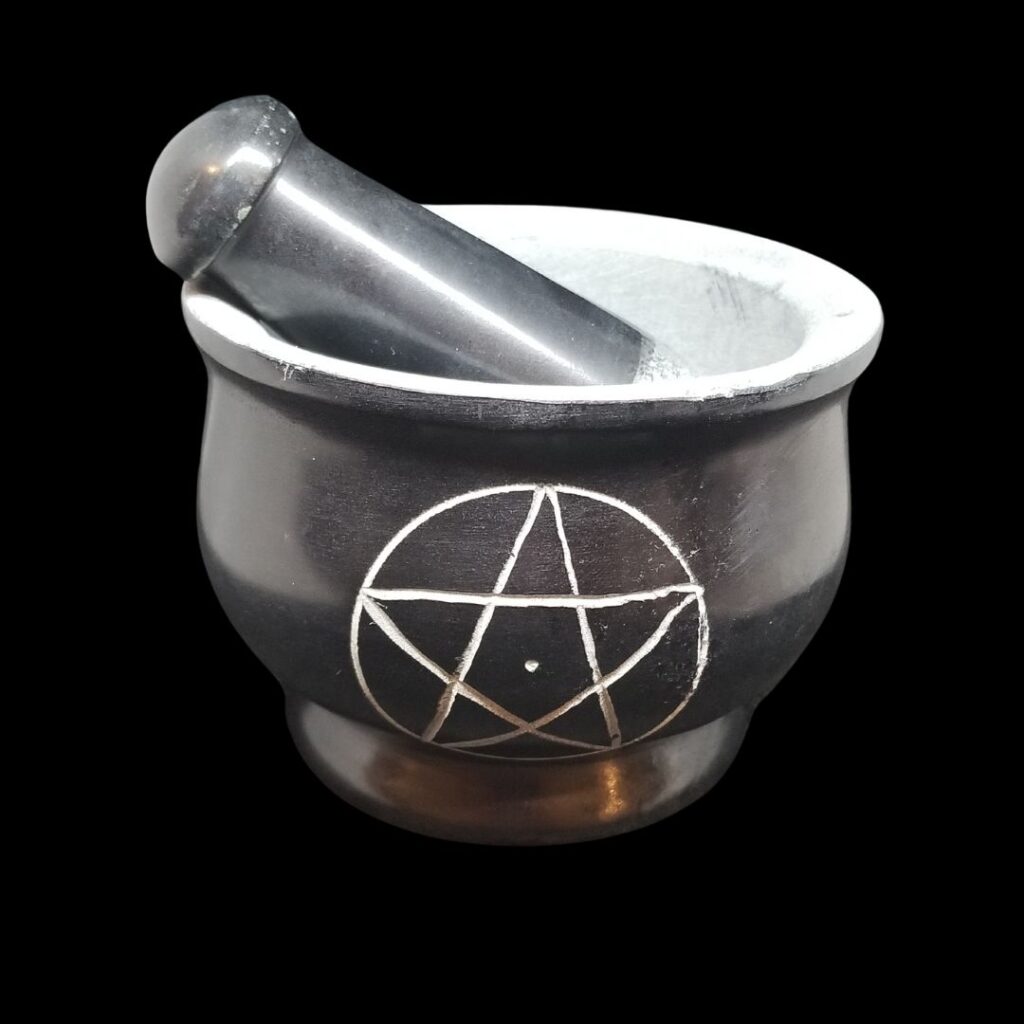 4 inch mortar and pestle with pentacle symbol