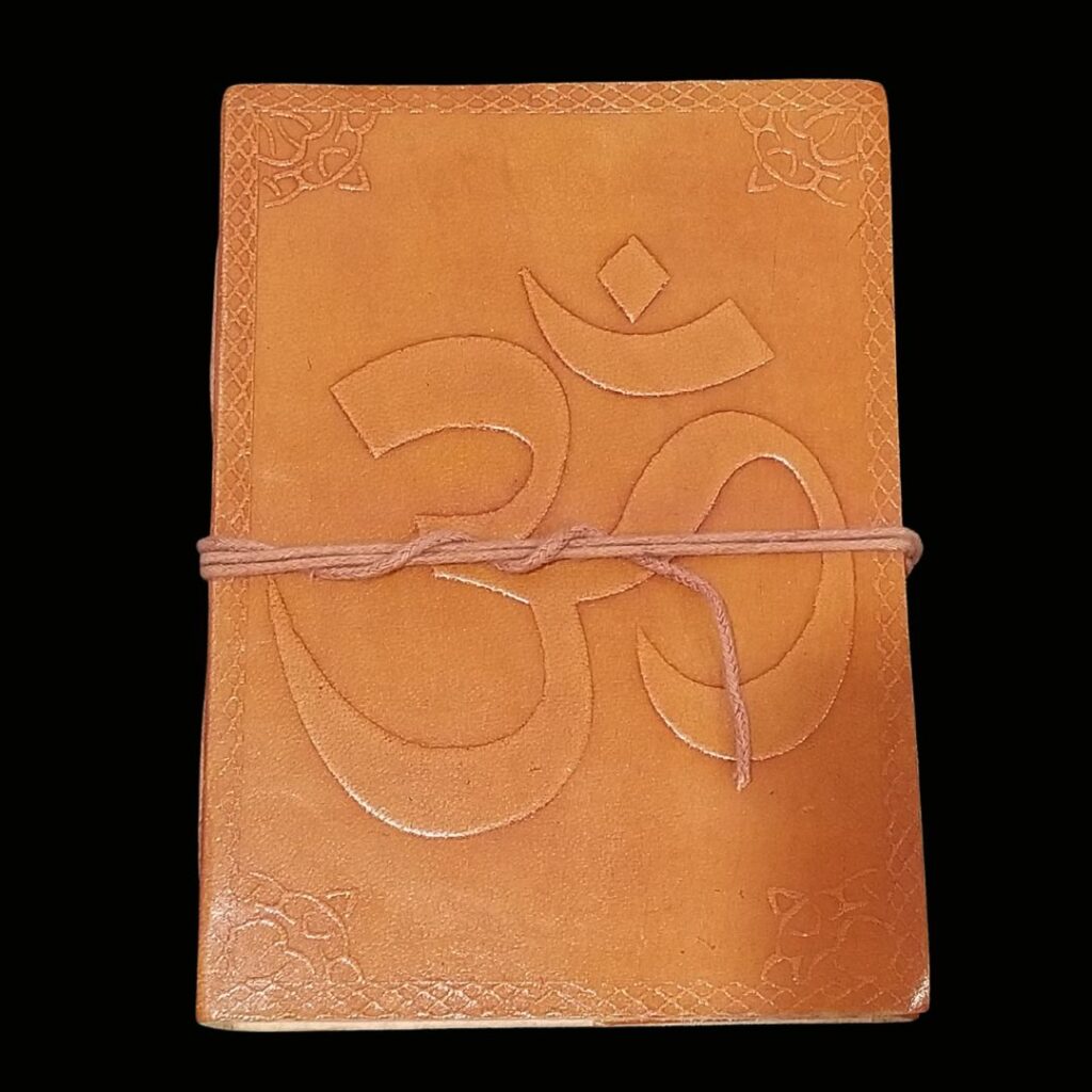 Leather Journal with Om Symbol. 5″x 7″, 200 pages, string closure