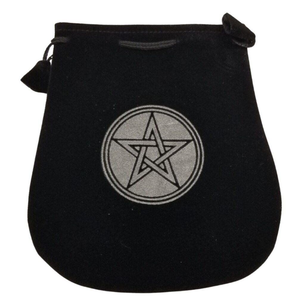 5″ black velveteen bag with pentagram imprinted design