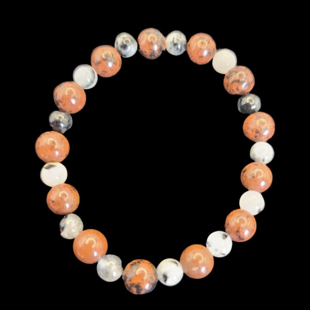 Protect Me Bracelet made with mahogany obsidian and tourmalinated quartz beads.