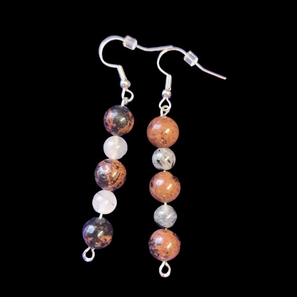 Protect Me Earrings made with mahogany obsidian and tourmalinated quartz beads.