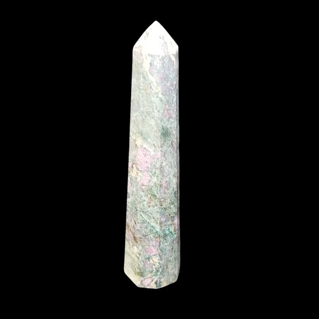 Ruby Fuchsite obelisk, approximately 3 inches tall.