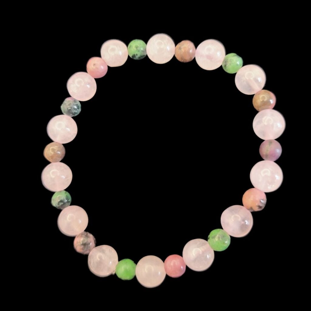 Self Love Bracelet made with rose quartz, rhodonite and ruby zoisite beads.