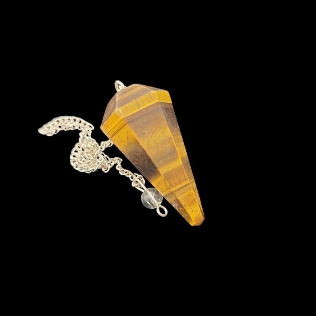 Tiger Eye pendulum, approximately 8″ from tip to tip.