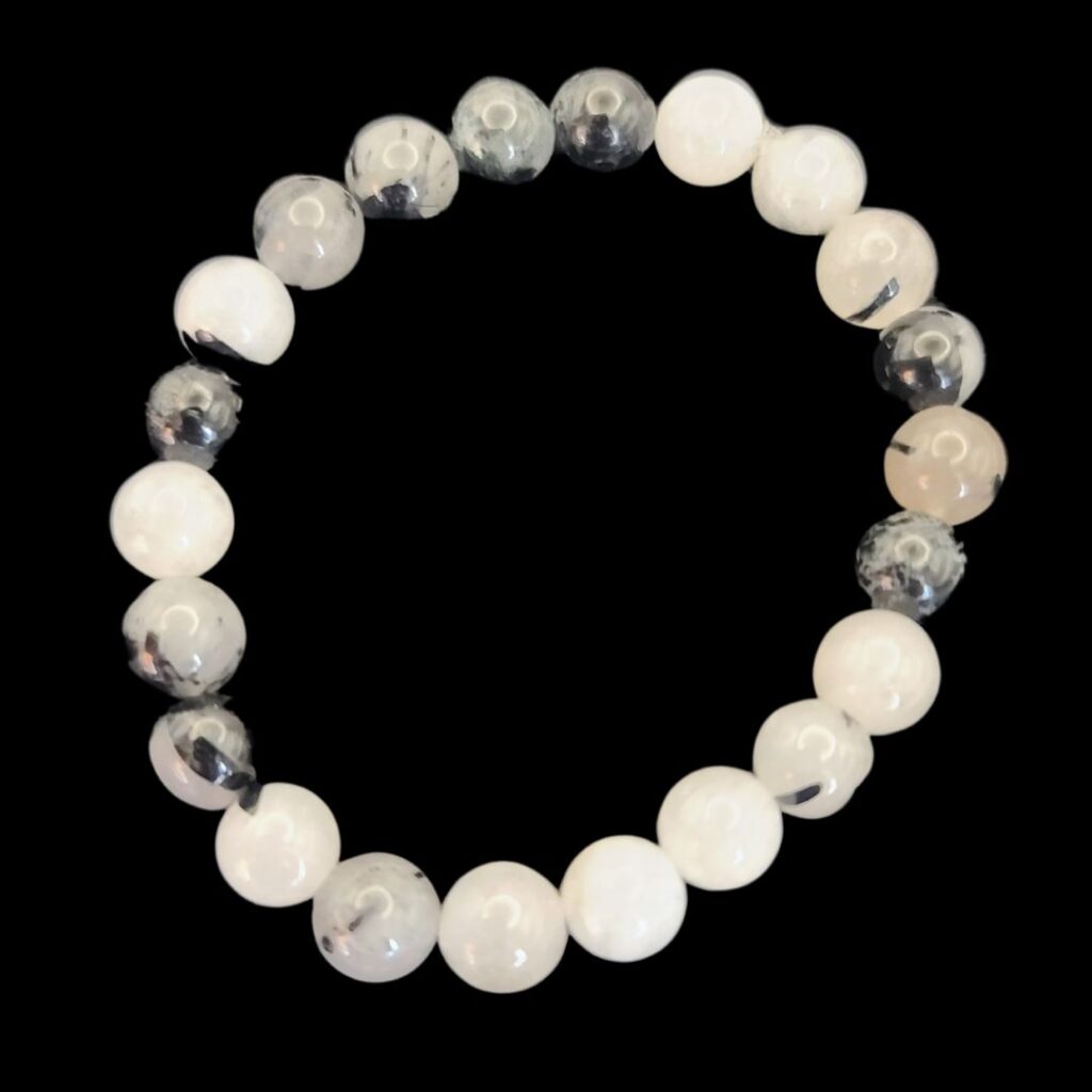 Bracelet made with tourmalinated quartz beads, approximately 8 inches.