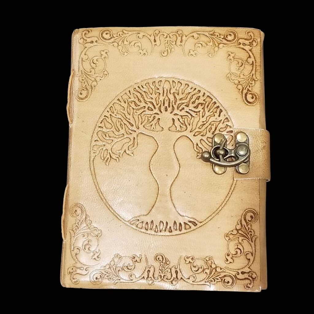 Leather Journal with Tree Goddess Symbol. 5″x 7″, 200 pages, latch closure
