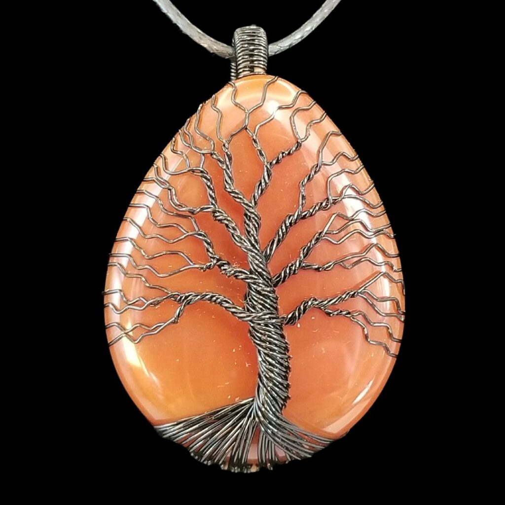 Carnelian with Black Tree of Life Wrapped Stone, large