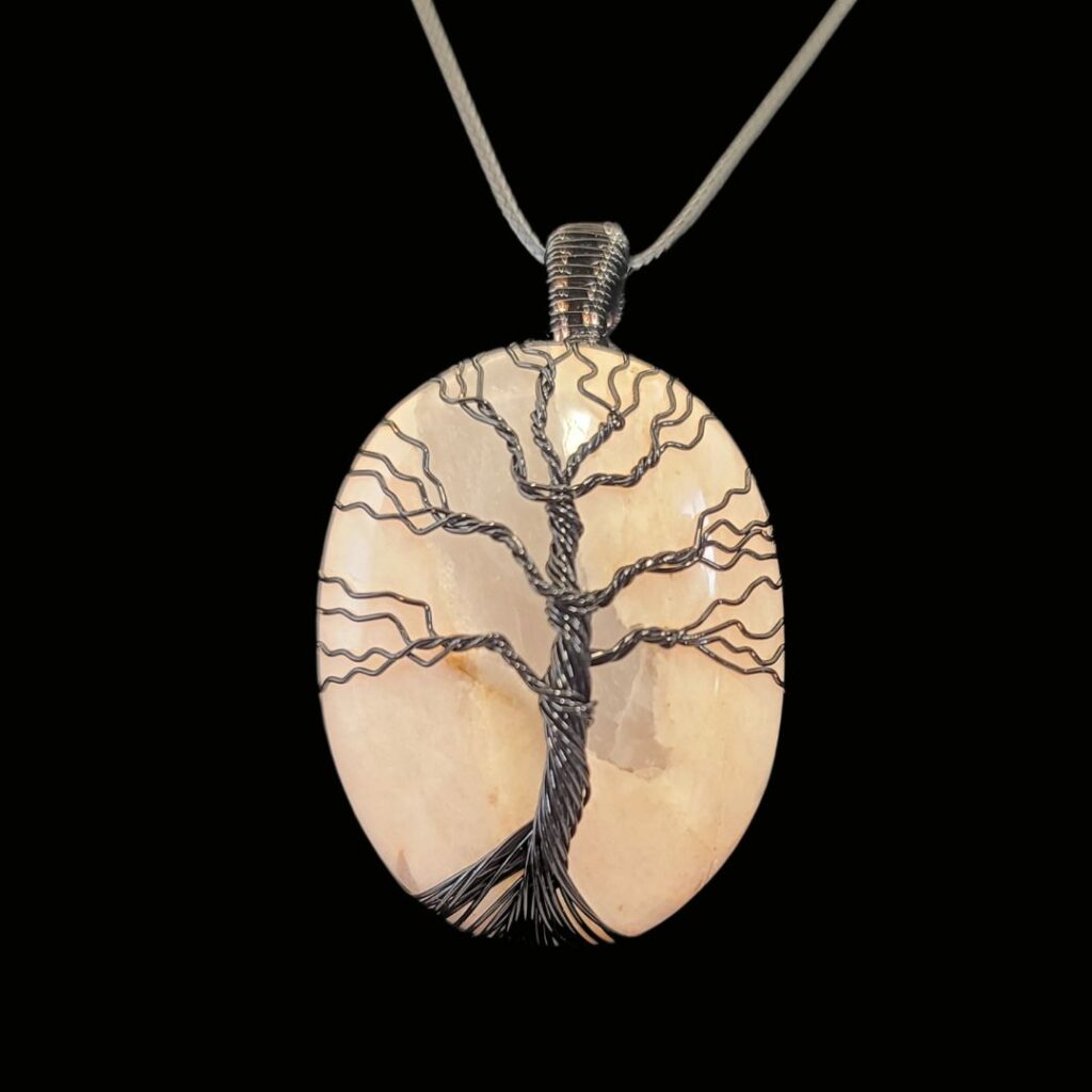 Moonstone stone wrapped with a black tree of life. All tree of life pendants will come with an adjustable cord. This large tree of life pendant is approximately 30mm x 40mm.