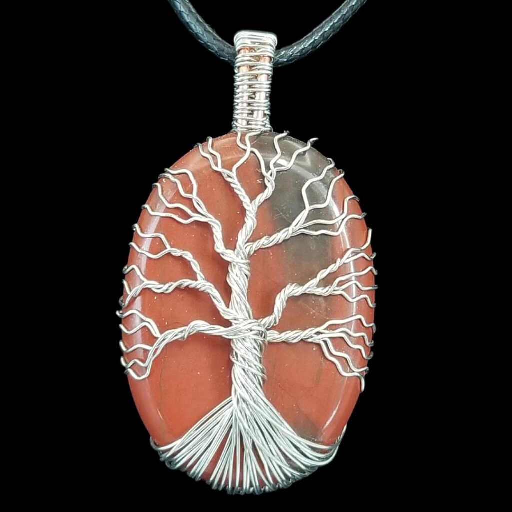 Red Jasper stone wrapped with a silver tree of life. All tree of life pendants will come with an adjustable cord. This large tree of life pendant is approximately 30mm x 40mm.