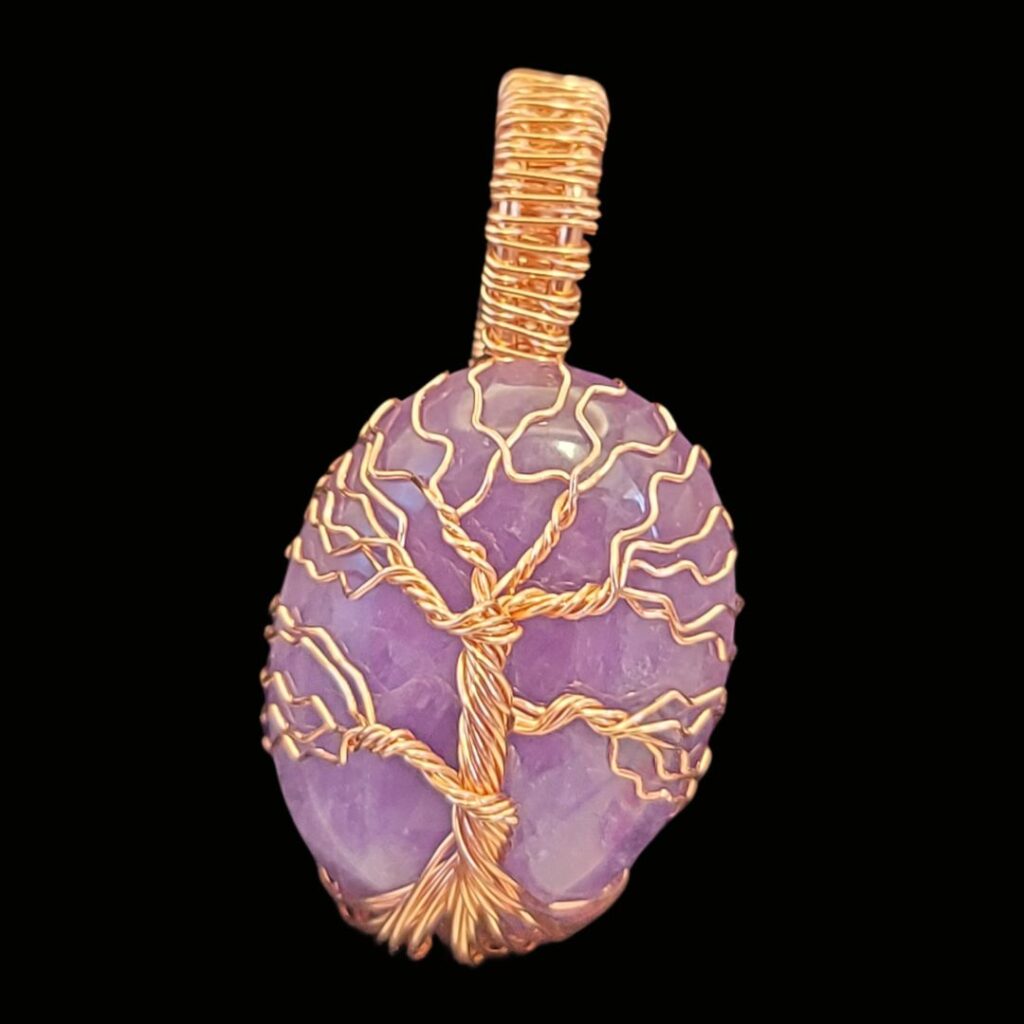 Amethyst cabochon stone wrapped with a copper tree of life. All tree of life pendants will come with an adjustable cord. The cabochons are 22mm x 30mm.