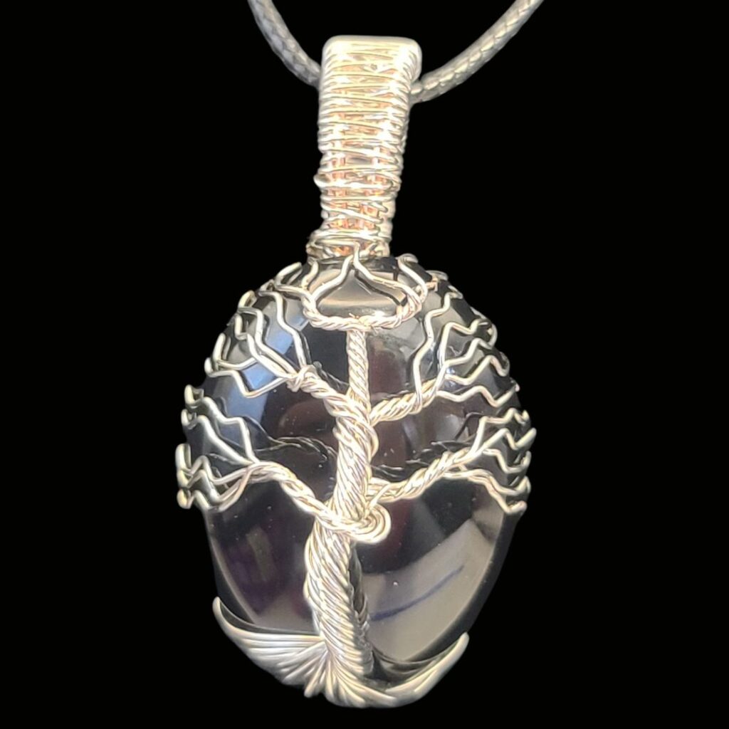Black Agate with Silver Tree of Life, small