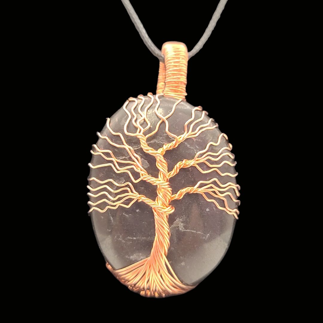 Black Tourmaline stone wrapped with an copper tree of life. All tree of life pendants will come with an adjustable cord. The large tree of life pendants are approximately 35mm x 45mm.